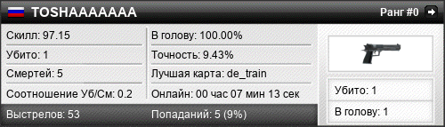 | de_inferno | 0 | 0.00 | 0.00 | 1 | 2 | 00:01:35 | 12.11.2015 | |
