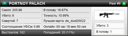 | de_dust20022 | 4 | 1.00 | 0.36 | 1 | 8 | 00:11:12 | 21.02.2016 | |