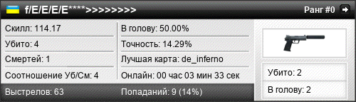 | de_inferno | 4 | 4.00 | 1.13 | 1 | 2 | 00:03:33 | 28.10.2015 | |