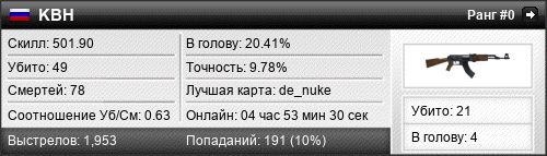 | de_aztec | 12 | 0.67 | 0.25 | 4 | 28 | 00:47:37 | 08.06.2017 | |