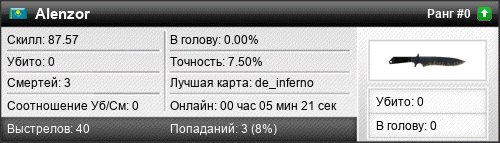 | de_inferno | 0 | 0.00 | 0.00 | 1 | 3 | 00:04:14 | 02.03.2016 | |
