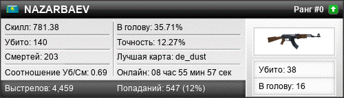 | de_dust-zero | 10 | 0.83 | 0.44 | 1 | 18 | 00:22:48 | 29.08.2016 | |