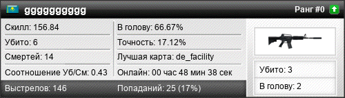 | 06.03.2016 @ 17:37 - 17:39 | de_cbble | 00:02:30 | 0 | 0 | 0 | 0.00% | 0.00% | 100.00 |