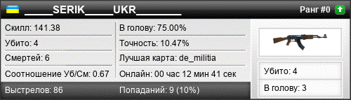 | de_militia | 4 | 0.67 | 0.38 | 2 | 6 | 00:10:25 | 15.03.2016 | |