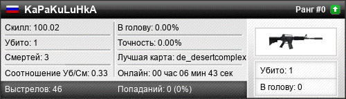 | de_desertcomplex | 1 | 0.50 | 0.27 | 1 | 3 | 00:03:43 | 11.03.2016 | |