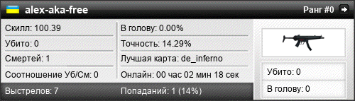 | de_inferno | 0 | 0.00 | 0.00 | 1 | 1 | 00:01:17 | 29.10.2015 | |