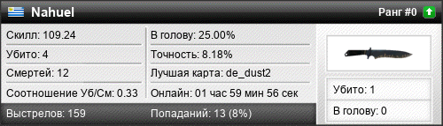 | de_dust2 | 4 | 4.00 | 0.05 | 1 | 45 | 01:22:36 | 21.11.2025 | |