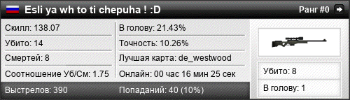 | de_westwood | 14 | 2.00 | 0.85 | 1 | 10 | 00:16:25 | 29.10.2015 | |