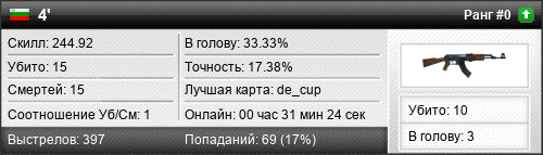 | de_cup | 15 | 1.36 | 0.61 | 0 | 15 | 00:24:41 | 01.01.1970 | |