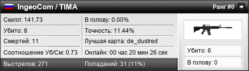 | de_dustred | 6 | 1.20 | 0.62 | 1 | 5 | 00:09:36 | 29.10.2015 | |