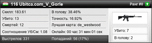 | de_westwood | 10 | 1.25 | 0.44 | 1 | 15 | 00:22:47 | 25.03.2016 | |