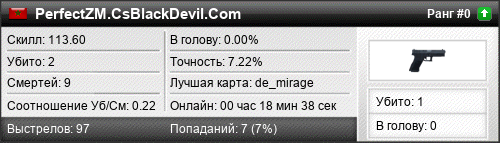 | de_mirage | 1 | 0.17 | 0.10 | 1 | 5 | 00:09:36 | 26.03.2016 | |