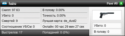 | 10.04.2016 @ 05:20 - 05:22 | de_dust20022 | 00:01:28 | 0 | 1 | 0 | 0.00% | 0.00% | 97.67 |