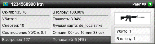| de_localstrike | 1 | 0.10 | 0.06 | 1 | 10 | 00:16:38 | 28.03.2016 | |