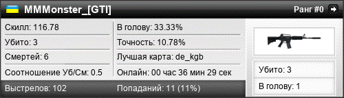 | de_kgb | 3 | 0.50 | 0.23 | 1 | 8 | 00:12:53 | 30.10.2015 | |