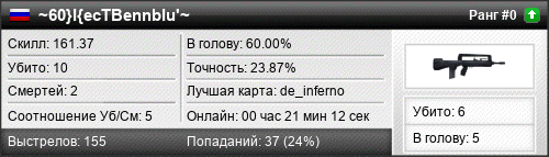 | de_inferno | 8 | 8.00 | 0.51 | 1 | 10 | 00:15:47 | 06.04.2016 | |