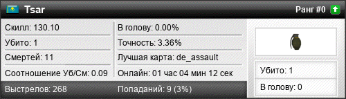 | de_dust2 | 0 | 0.00 | 0.00 | 1 | 5 | 00:08:11 | 14.10.2018 | |