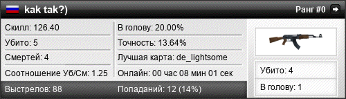 | de_lightsome | 5 | 1.25 | 0.62 | 1 | 5 | 00:08:01 | 31.10.2015 | |