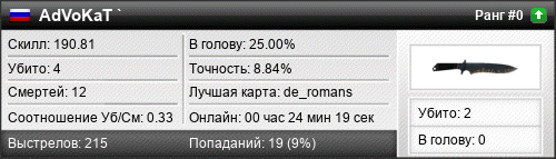 | de_localstrike | 0 | 0.00 | 0.00 | 1 | 1 | 00:00:34 | 20.04.2016 | |