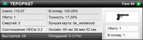 | de_westwood | 1 | 0.20 | 0.12 | 1 | 5 | 00:08:02 | 19.04.2016 | |