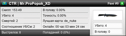 | de_nuke | 4 | 2.00 | 1.76 | 1 | 2 | 00:02:16 | 23.04.2016 | |