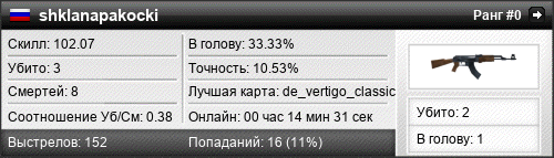 | de_vertigo_classic | 3 | 1.50 | 0.45 | 1 | 4 | 00:06:43 | 20.10.2015 | |