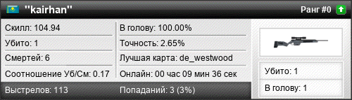 | de_westwood | 1 | 0.17 | 0.10 | 1 | 6 | 00:09:36 | 26.04.2016 | |