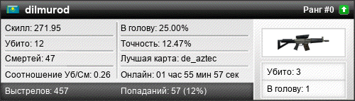 | de_mirage | 0 | 0.00 | 0.00 | 0 | 10 | 00:12:41 | 01.01.1970 | |