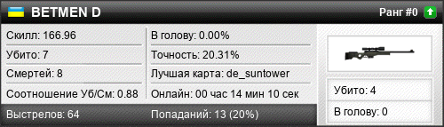 | de_suntower | 4 | 1.00 | 0.55 | 1 | 5 | 00:07:18 | 04.05.2016 | |