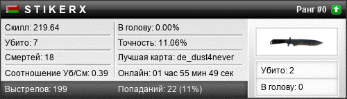 | de_dust4never | 3 | 0.38 | 0.21 | 1 | 12 | 00:14:18 | 05.05.2016 | |