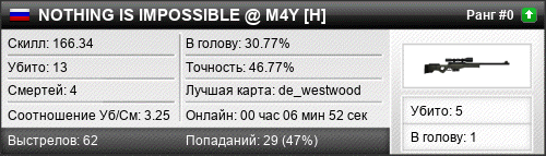 de_westwood | 12 | 4.00 | 2.31 | 1 | 4 | 00:05:12 | 09.05.2016 |