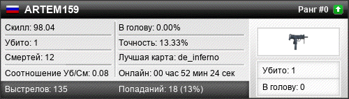 | de_inferno | 1 | 0.11 | 0.05 | 1 | 15 | 00:21:31 | 15.05.2016 | |