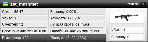 | de_nuke | 1 | 0.17 | 0.06 | 1 | 11 | 00:17:56 | 02.11.2015 | |