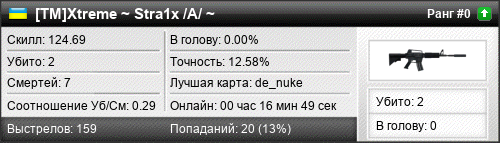 | de_inferno | 0 | 0.00 | 0.00 | 2 | 5 | 00:07:06 | 07.06.2016 | |