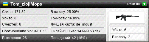 | de_indust | 8 | 1.60 | 0.60 | 0 | 10 | 00:13:23 | 01.01.1970 | |