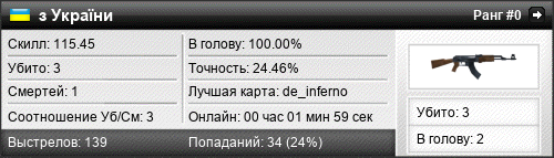 | de_inferno | 3 | 3.00 | 1.51 | 0 | 1 | 00:01:59 | 01.01.1970 | |
