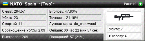| de_westwood | 21 | 2.10 | 1.00 | 2 | 14 | 00:21:05 | 22.05.2016 | |