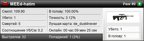 | de_dust4never | 1 | 0.20 | 0.11 | 7 | 8 | 00:09:25 | 25.05.2016 | |