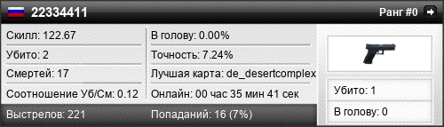 | de_desertcomplex | 2 | 0.18 | 0.08 | 1 | 14 | 00:23:55 | 02.11.2015 | |