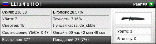 13.06.2016 @ 04:30 - 04:34 de_aztec 00:04:23 0 2 0 0.00% 6.67% 241.60 Разница: -2.83