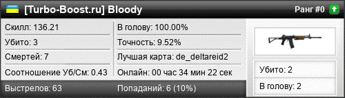 | de_mirage | 0 | 0.00 | 0.00 | 2 | 5 | 00:04:46 | 13.11.2016 | |