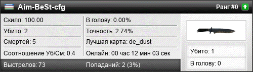 | de_inferno | 0 | 0.00 | 0.00 | 1 | 3 | 00:04:38 | 02.06.2016 | |