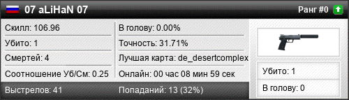 | de_desertcomplex | 1 | 0.33 | 0.16 | 1 | 4 | 00:06:19 | 04.06.2016 | |