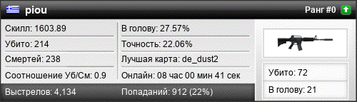 de_inferno | 8 | 1.33 | 0.29 | 1 | 18 | 00:27:38 | 14.09.2025 |