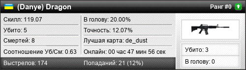 | 11.06.2016 @ 18:02 - 18:23 | de_dust20022 | 00:21:04 | 0 | 0 | 0 | 0.00% | 0.00% | 119.07 |