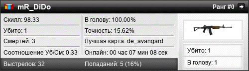 | de_avangard | 1 | 1.00 | 0.41 | 1 | 2 | 00:02:27 | 03.11.2015 | |