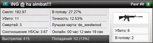 | de_westwood | 11 | 3.67 | 0.89 | 1 | 8 | 00:12:19 | 18.06.2016 | |