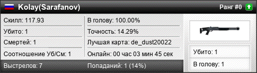 | de_dust20022 | 1 | 1.00 | 0.27 | 1 | 2 | 00:03:45 | 18.06.2016 | |