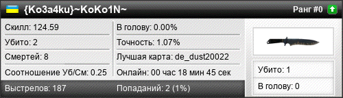 | de_dust20022 | 2 | 0.40 | 0.14 | 1 | 9 | 00:14:19 | 20.06.2016 | |