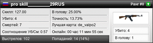 | de_inferno | 0 | 0.00 | 0.00 | 1 | 4 | 00:04:25 | 04.11.2015 | |